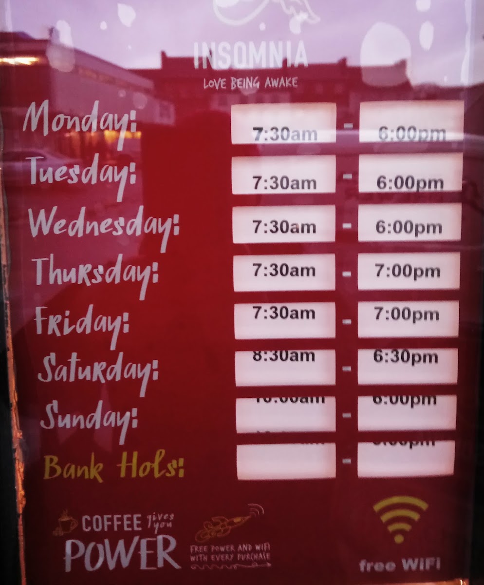 Insomnia Coffee Company - Athy Menu